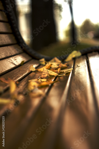 Осенние листья на скамье: красота природы в деталях
