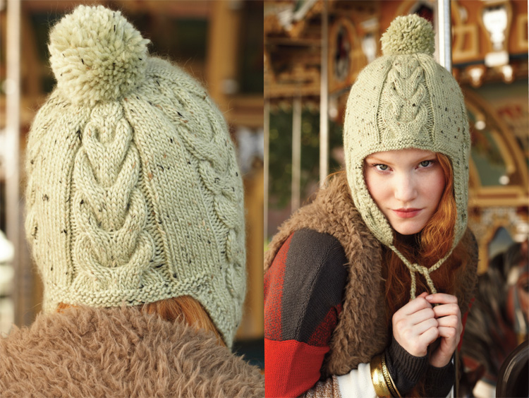 Женская ушанка спицами: Схема с косами