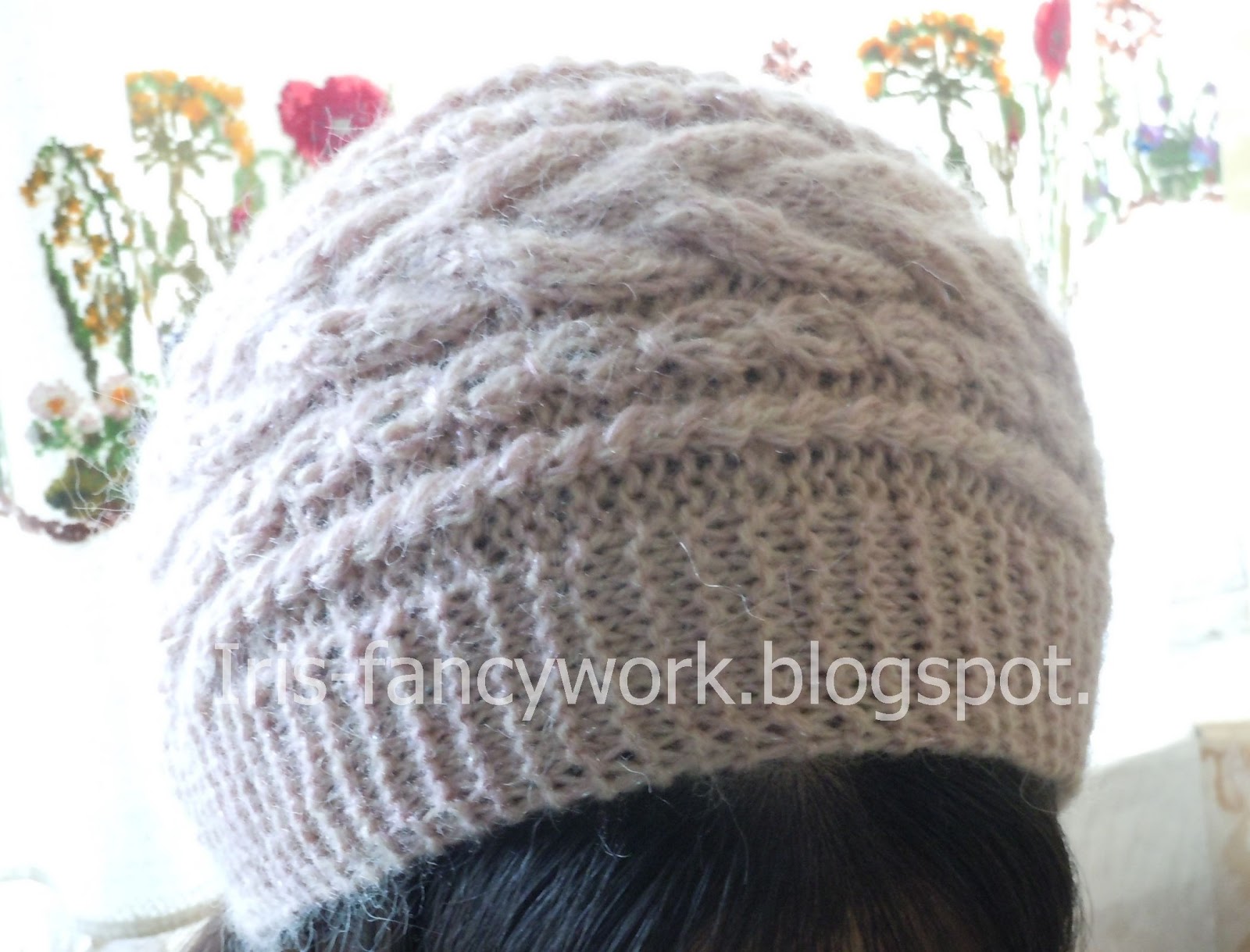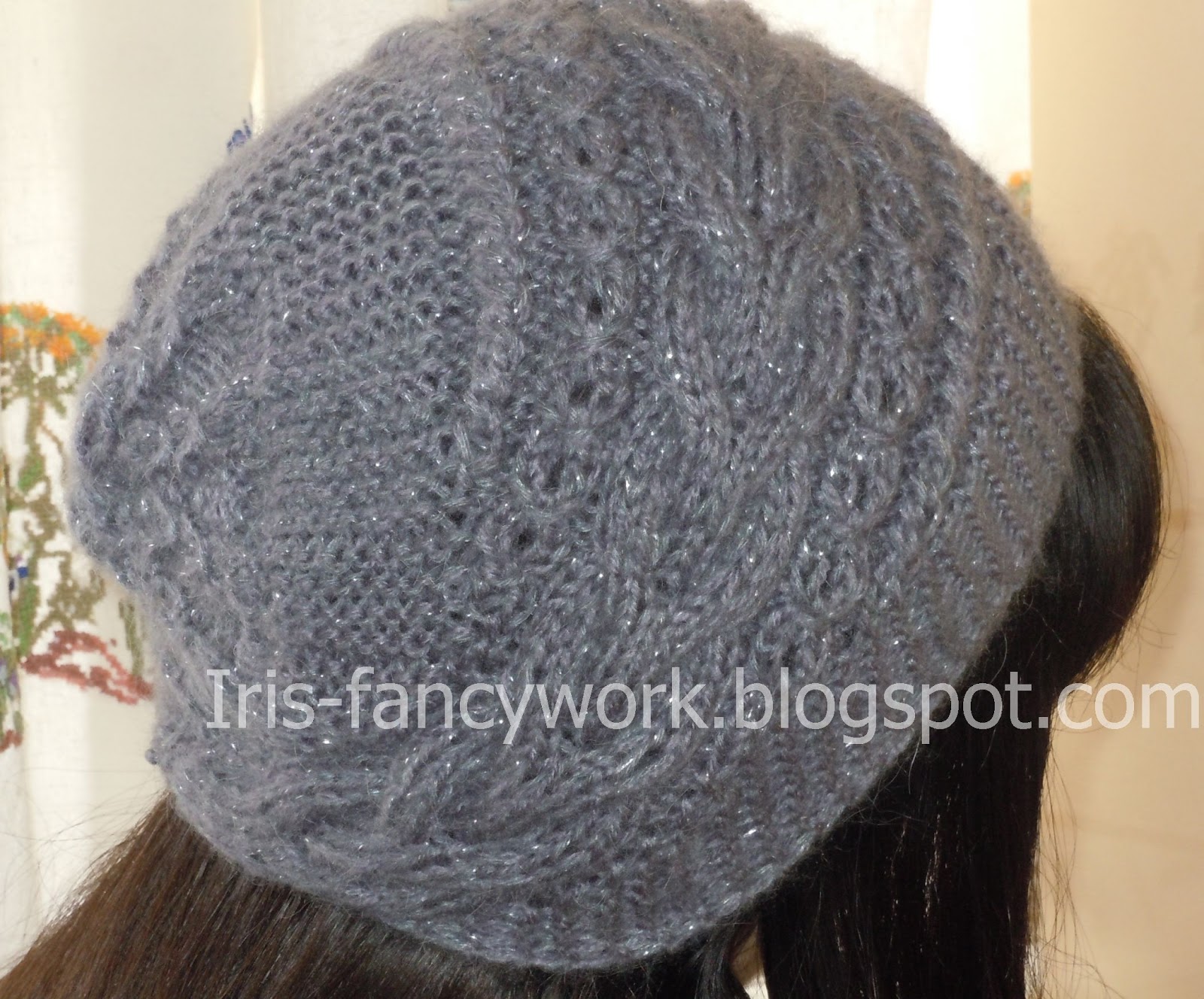 Модные вязаные шапки из мохера с узором «косичка»