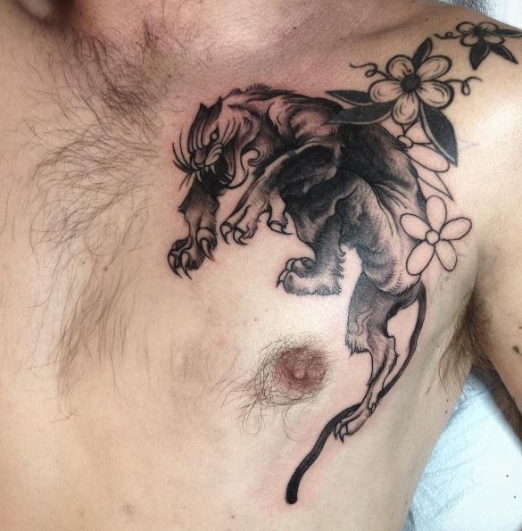Мужские татуировки: пантера на груди как символ силы